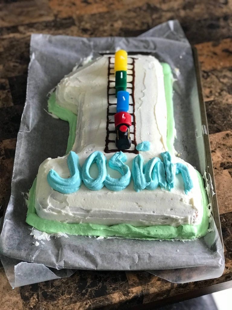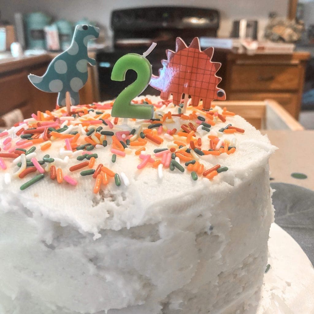 To be honest, I wasn’t super happy with the final look. I ran into some technical difficulties…like my frosting tip falling out of my first bag of frosting. Still, Josiah exclaimed, “I LOVE IT!” when he saw his 5th birthday cake. We topped it with a number 5 sparkler candle and sang happy birthday to him and his aunt, with whom he shares a birthday on a Zoom call. It was perfectly special, even if my cake wasn’t Pinterest-worthy.