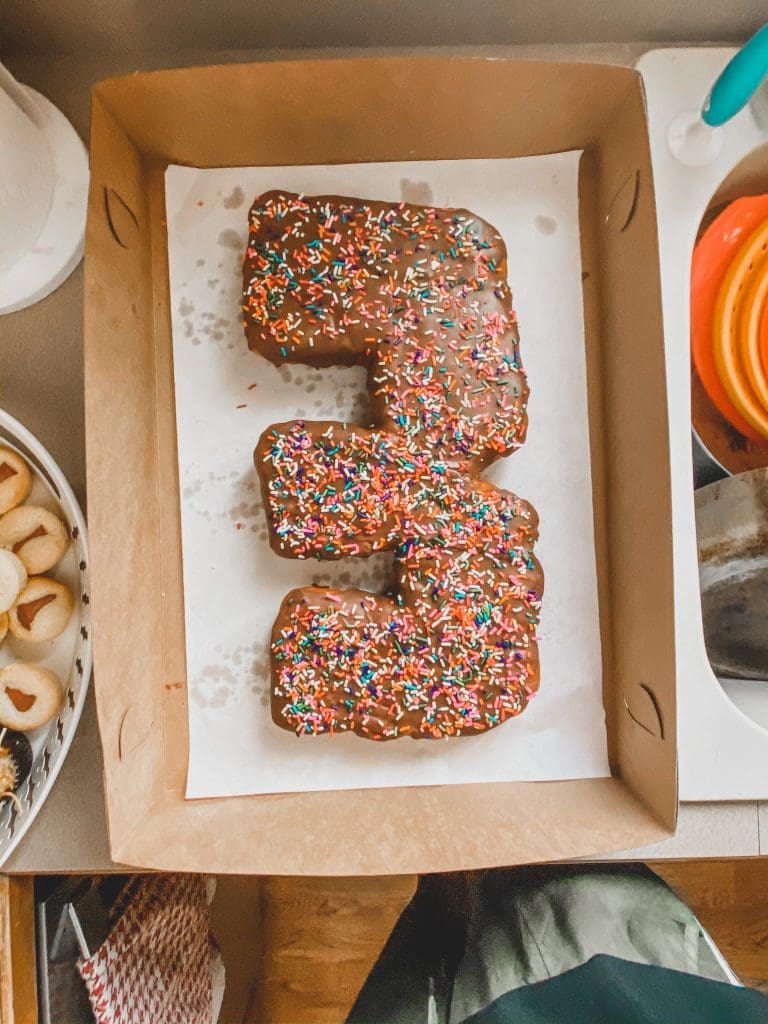 Bringing your child in on the little decisions helps to get them excited for the big day! For the first few years my son didn’t really care so I got to try a few different things out. The cakes I’ve done for my son include: Chantilly cake, confetti cake, strawberry cake (from a box mix) and donuts from Puffy Cream Donuts, a cookie cake from Eileens, and this year when I asked him what he wanted he said, “Vanilla!”