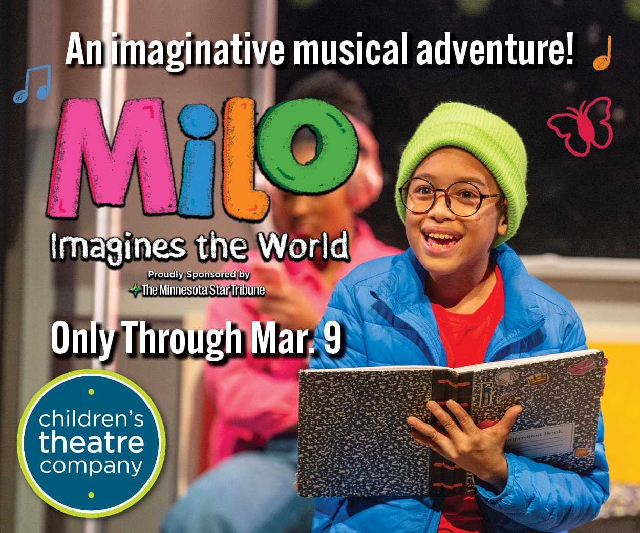 On a crowded subway, Milo passes the time imagining the lives of the other passengers. See his illustrations brought to spirited life in this world-premiere musical, featuring dynamic new songs ranging from hip hop and pop to country. Ride along with Milo from stop to stop as he begins to understand that first impressions aren’t always accurate, that his older sister Adrienne isn’t always annoying, and that real life can sometimes be even more incredible than an imaginary one.