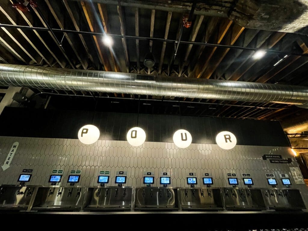 To start, there’s the Wall of Beverages. With the self-pour tap wall there is something for everyone in our group–wine, beer, cider, even NA options. I love a tap wall because I can never decide on one drink so with the option to try just a little I don’t have to choose! It’s like a DIY flight!