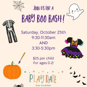 Calling all our littlest friends! We are inviting you to a Baby Boo Bash on Saturday, October 25th! Join us for pumpkin painting, Halloween games, a photo backdrop, and of course a costume contest! So be sure to wear your BEST costume!