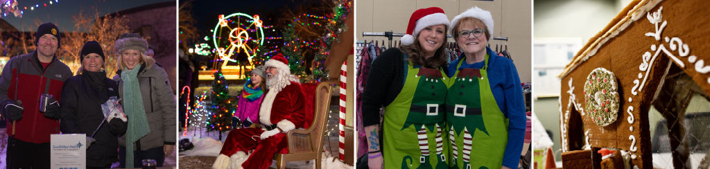 An annual holiday event with a tree lighting followed by refreshments, bonfires, live reindeer, gingerbread house displays, and Santa Claus.