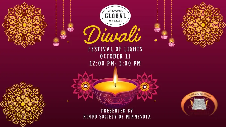 Join us at Midtown Global Market on Saturday, October 11 from 12–3 PM for an afternoon filled with joy, culture, and community. Experience the magic of Diwali with music, dancing, and vibrant performances presented by the Hindu Society of Minnesota. This is a FREE and family friendly event.