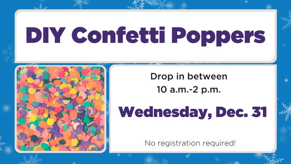 Stop by the Art House and make confetti poppers to use at your New Years celebration that night. Ring in the new year with a fun art activity!