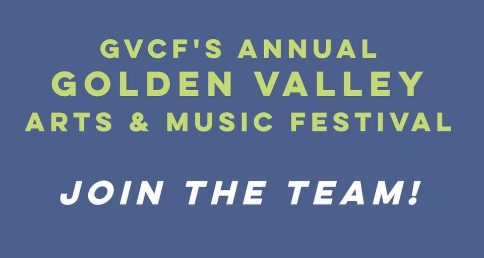 GVCF’s Golden Valley Festival is back after a break of six years! Held under the water tower in Golden Valley, it will future feature live bands all day, kids activities, food trucks, beer and wine, artists, and much more! September 13, 10 AM to 10 PM!