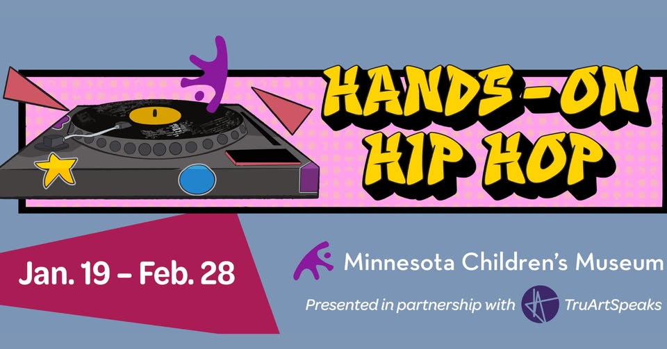 Hands-On Hip Hop kicks off on Monday, Jan. 19 (Martin Luther King Jr. Day), with a celebratory event featuring music from DJ Mickey Breeze and breakin’ moves by Herb Johnson, then runs Saturdays from Jan. 31 through Feb. 28. Hands-On Hip Hop is created by Minnesota Children’s Museum in partnership with TruArtSpeaks, a St. Paul community organization focused on building connection through Hip Hop and other artistic expression.