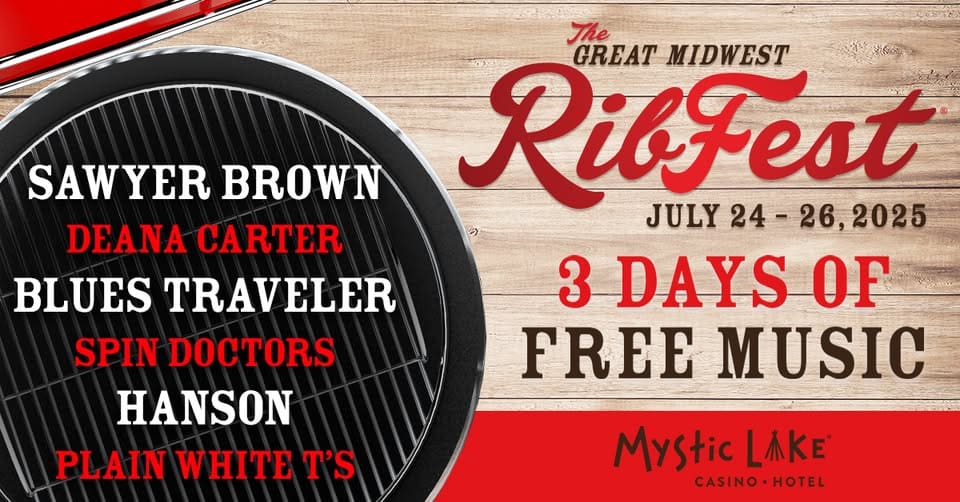 Summer sizzles as The Great Midwest Rib Fest returns to Mystic Lake with three days of food, music and fun. Get ready for outdoor concerts by Sawyer Brown, Blues Traveler and Hanson, mouthwatering ribs and more at summer’s ultimate pig-nic!
