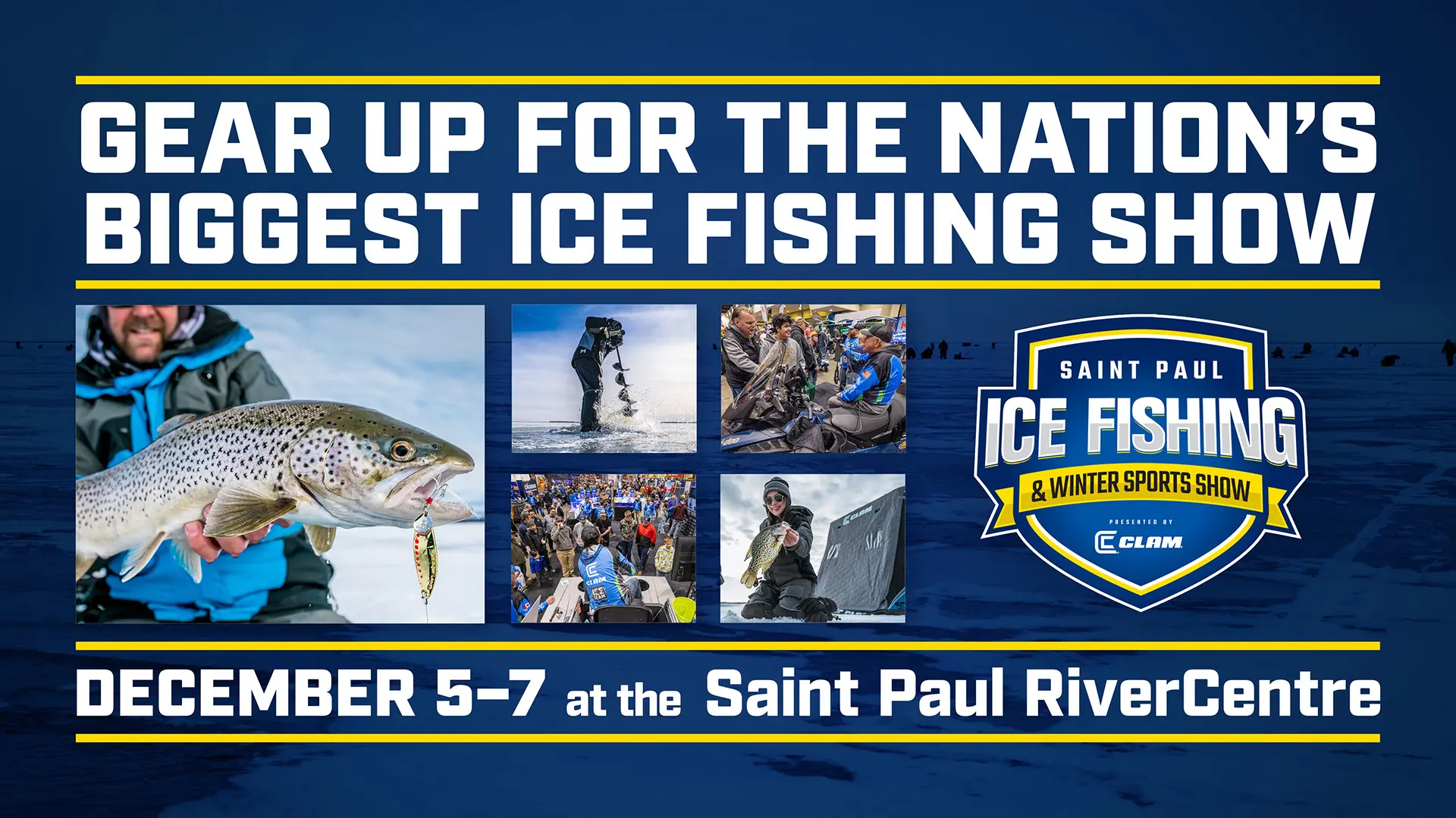 The St. Paul Ice Fishing Show, presented by Clam, is the largest and ultimate ice fishing event in the nation. The event is the official kick off to winter in the upper Midwest, with hard core fishing and winter sports enthusiasts making their annual pilgrimage to Saint Paul RiverCentre. During the three-day extravaganza, attendees will shop more that 190 exhibits, taking their pick of fish houses, augers, underwater cameras, rods and reels, apparel & more.