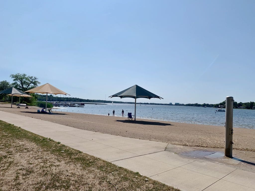 The spacious swim area opens every year on Memorial Day weekend. The sandy beach is just as much fun as the water! There are restrooms and a changing area on-site. Please note there is no lifeguard on duty.