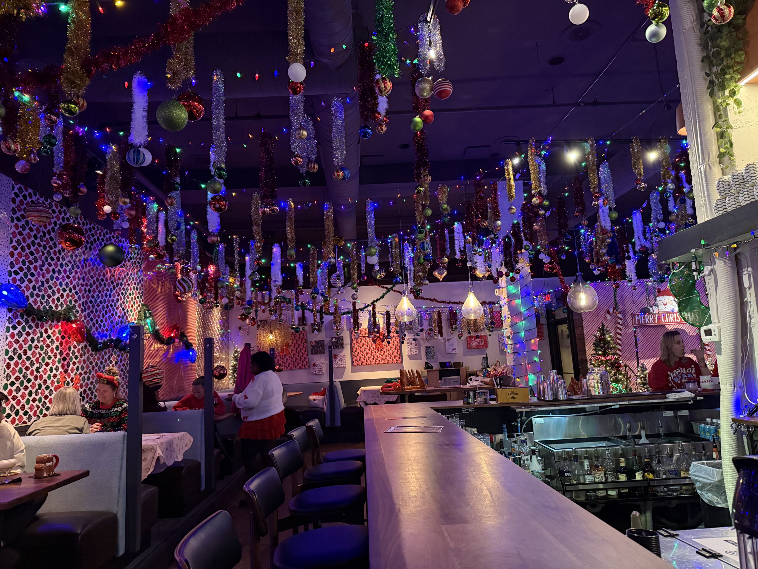 A classic holiday hangout with twinkling lights, cozy corners, and merry pub vibes.