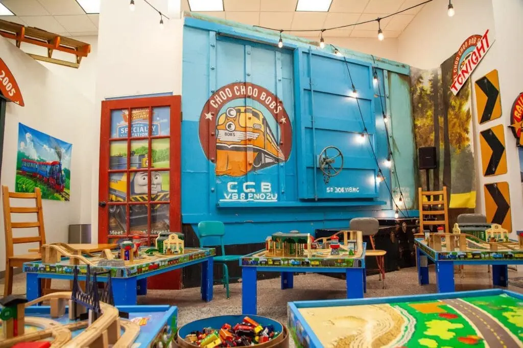 - Amenities: The store offers an interactive play area with train tables, ride-on train toys, a gear wall, and a dedicated toddler space. Additional features include a bounce house, Hot Wheels tracks, and a variety of train-themed activities. Families can also enjoy weekly Story Time sessions and live music performances.
