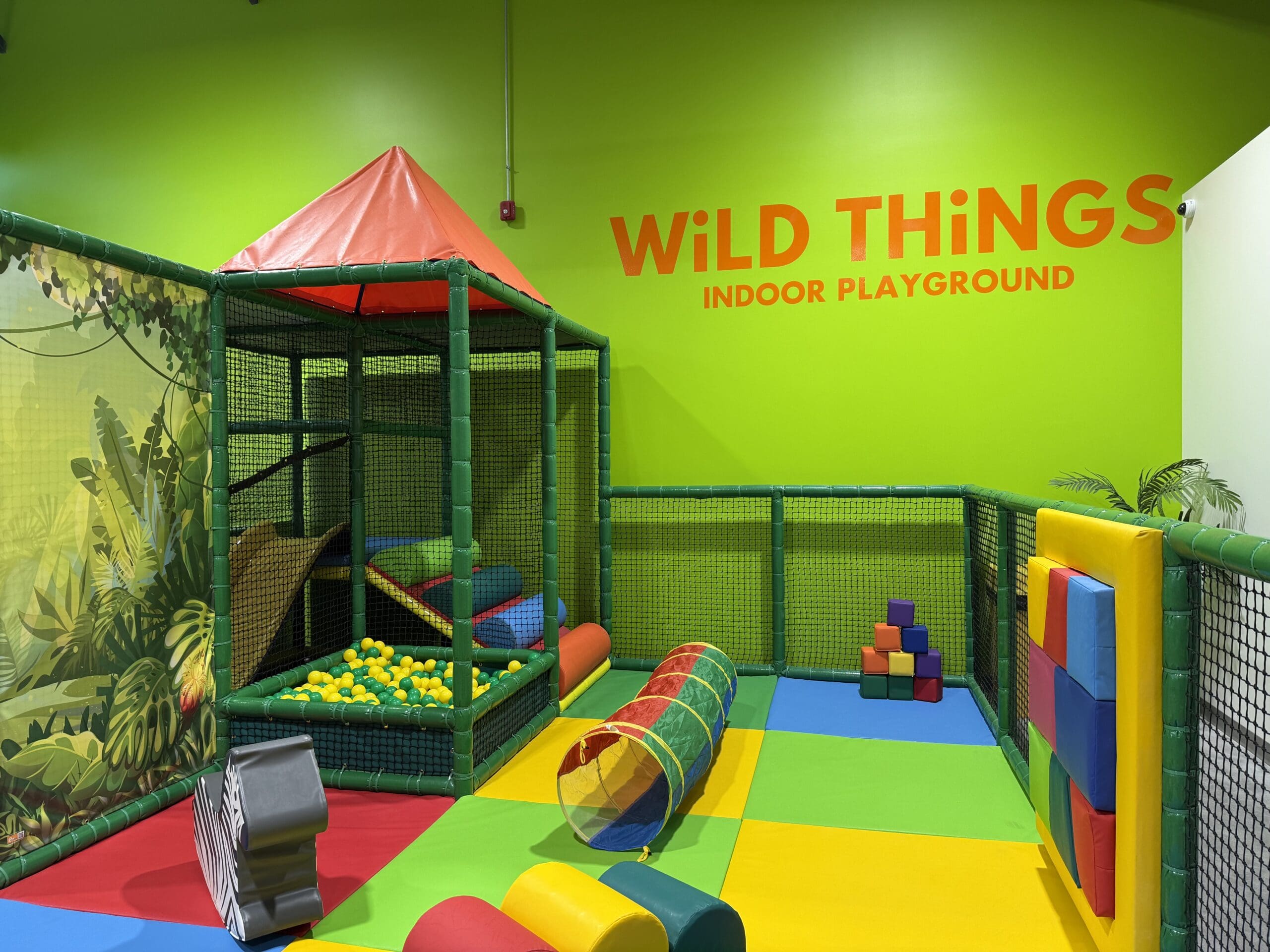 Wild Things is a 5,200-square-foot jungle-themed indoor play space for kids ages 0–12, featuring a three-level climbing structure, slides, and a soft toddler zone. They also have a beautiful room to host birthday parties!