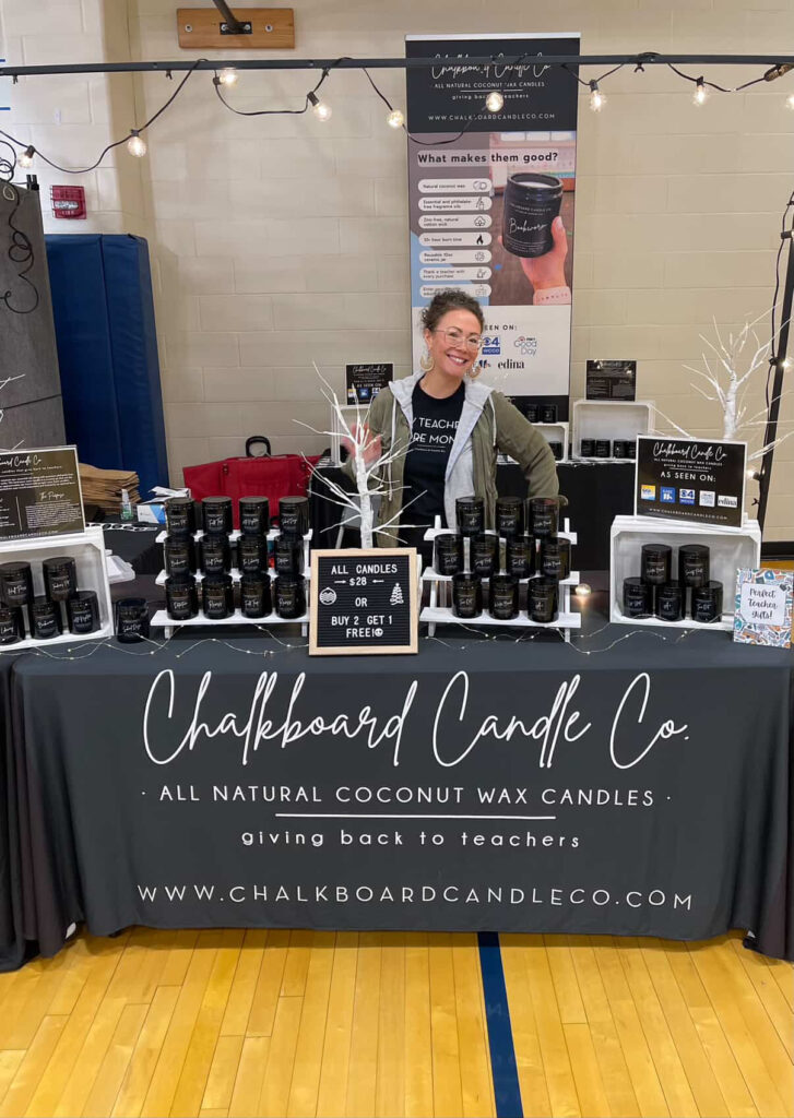 Chalkboard Candles were sparked from an idea Kari had to make eco-friendly, quality candles with a purpose. “After being an elementary school teacher for over 10 years and burning hundreds of candles in our home, I decided to combine my desire to create a richly scented, natural candle with a mission to bring awareness and gratitude to the sacrifices teachers make for their students each day.” With every candle purchased, customers can enter the name of their favorite educator. The names get randomly chosen and she sends checks to the winners. Chalkboard Candles has already given away over $12,000! Her website is “chalk-” full of candles with clever names and aesthetically pleasing jars, sprinkled in with some fun apparel in support of teachers, of course. You can smell these candles for yourself on December 7 and 8th at the Holiday and Craft Show at the Eagan Community Center. The perfect Christmas teacher’s gift is waiting for you!