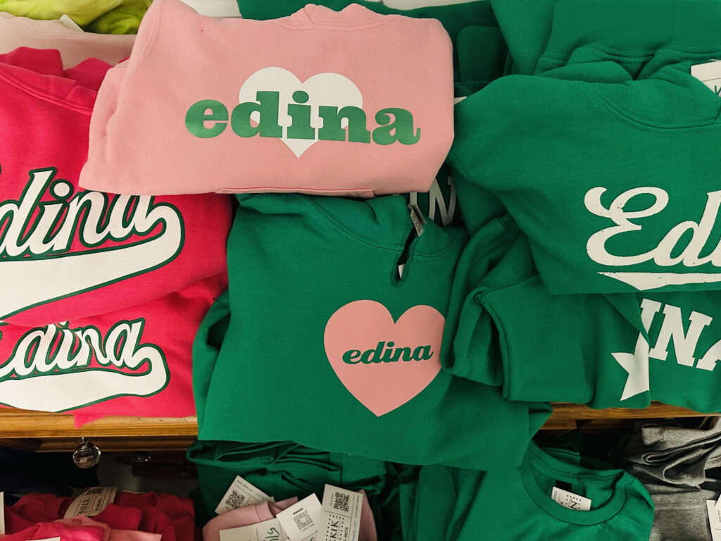 NikkiK Custom Apparel started about 10 years ago. Her daughter went to Concord Elementary and wanted a T-shirt that was pink with her school’s name on it, so she went to Michaels and made one for her! Her fun and creativity turned spirit wear apparel into fashion. Nikki said she is all about connections that come when she is able to attend the markets and pop-up shops. She currently has lines for Edina, St Louis Park, Peter Hobart Elementary, and Hair District Collective. Contact Nikki for custom orders!