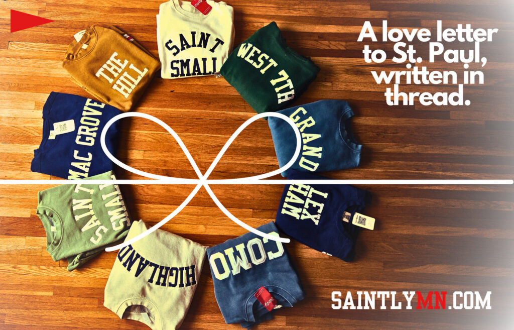 Saintly was dreamed up by St. Paul sisters Ashley Brummans (SPPS teacher, professional kid-wrangler) and Leanna Thomas (St. Paul Parks & Rec gardener and resident “doer of all the things”). They like to say Saintly is their “love letter to Saint Paul, written in thread.” Every piece is a tiny celebration of the city’s quirks, charms, and the neighborly magic that makes St. Paul, St. Paul.