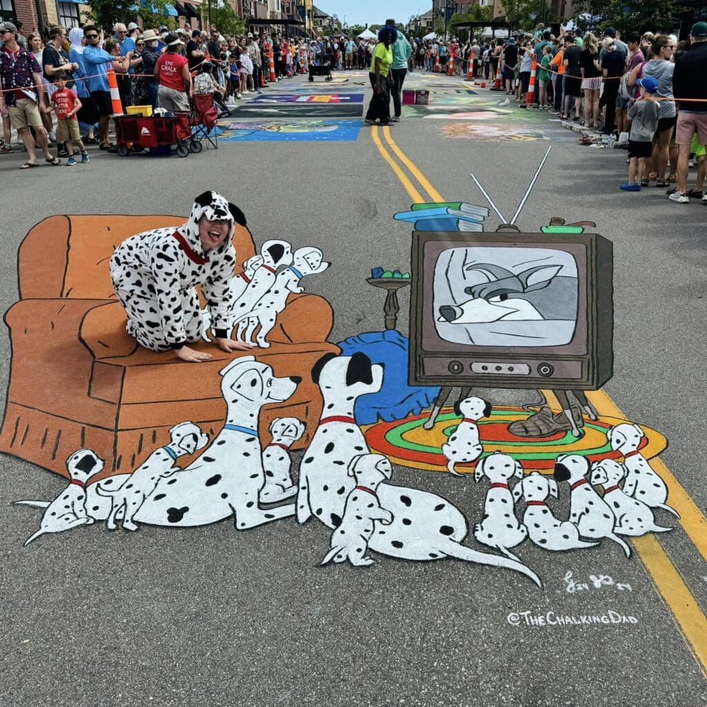 Chalkfest Maple Grove will return to its original location on downtown Main Street in Maple Grove, MN between Elm Creek Boulevard and Arbor Lakes Parkway on June 7 & 8, 2025 from 10 AM – 6 PM. The artists will be chalking and the public is welcome to view the art as it is being created.