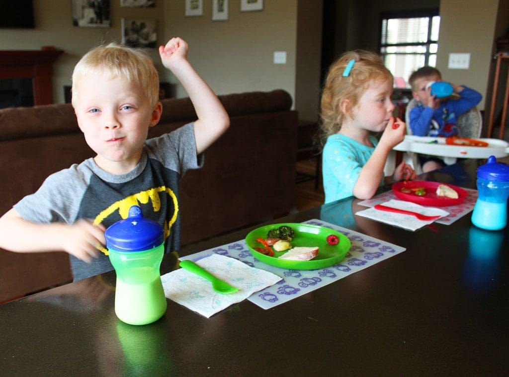 At our table, the kids have to take a bite of everything. After they take a bite, they have two options. They can either say, “Yummy!” or “No thank you.” Sometimes my daughter says, “No thank you, it’s not for me,” which is about the most endearing thing ever. If they say “yummy,” it means they need to eat more of that item. A “No thank you,” means there’s no more pressure, they can leave the rest of that food untouched on their plate. They also have to take their No Thank You Bite before receiving more of any food they do like; no you can’t load up on three servings of pasta and then decide you don’t like the asparagus at the very end of the meal.