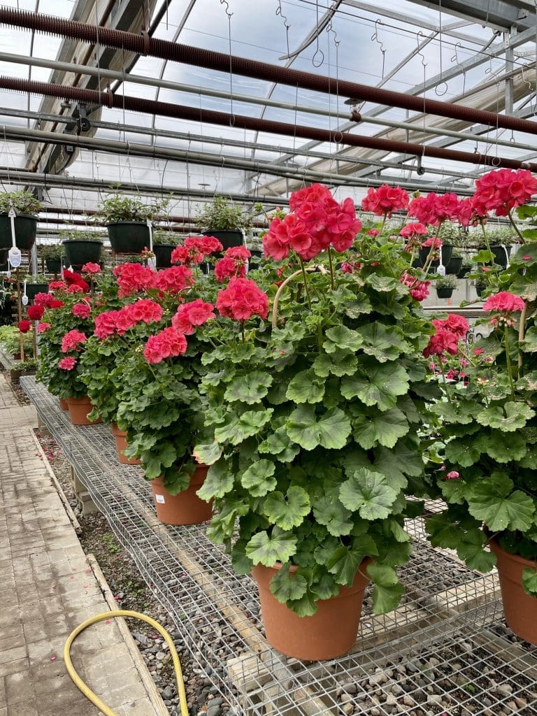Back to the actual facility itself. From the parking lot, Tonkadale appears to be a quaint garden center. However, step inside and you’ll immediately be struck by its beautiful, light, and airy space. The front of the shop serves as a home decor plant goods shop. Step beyond the front space, and you’ll understand how massive Tonkadale is. Inside the greenhouse, you will find row after row of beautiful plants. House plants, annuals, perennials, seasonal varieties, and more. They grow annuals for springtime planting as well as geraniums and poinsettias (and many others). We’ve actually never ever seen geraniums grow so huge!
