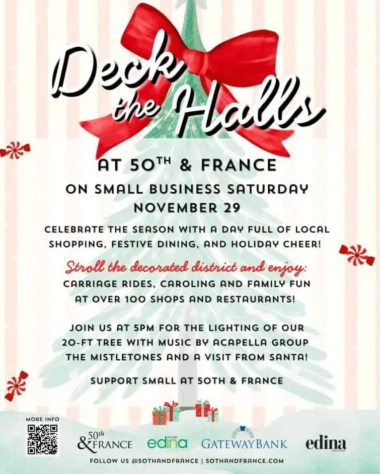 50th & France , United States✨🎄 Holiday Lighting Ceremony at 50th & France! 🎄✨ Kick off the season Saturday, Nov. 29 with a day of local shopping, dining and free events and an evening of lights, music & holiday cheer! 🌟 🛍️ Small Business Saturday (and always!) Shop 100+ locally owned small businesses, dine at...